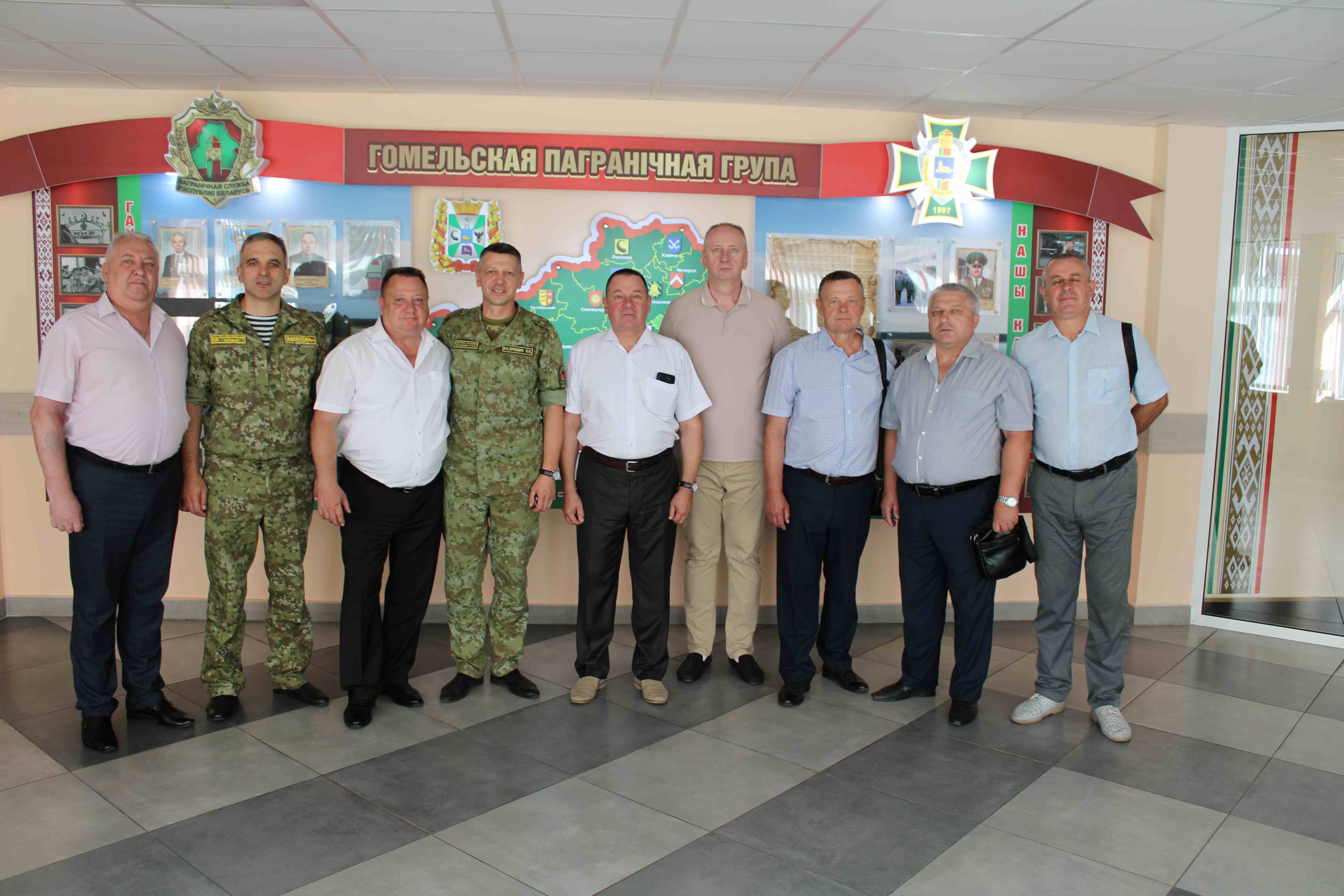Гости из Мозыря вручили памятные сувениры и подарки командиру пограничной группы Дмитрию Винникову и члену Гомельской областной ветеранской организации полковнику в отставке Валерию Сливке.Ветераны Мозырской районной организации «Белорусский союз ветеранов органов пограничной службы» выразили искреннюю благодарность принимающей стороне за насыщенную и очень плодотворную программу посещения Гомельской пограничной группы.