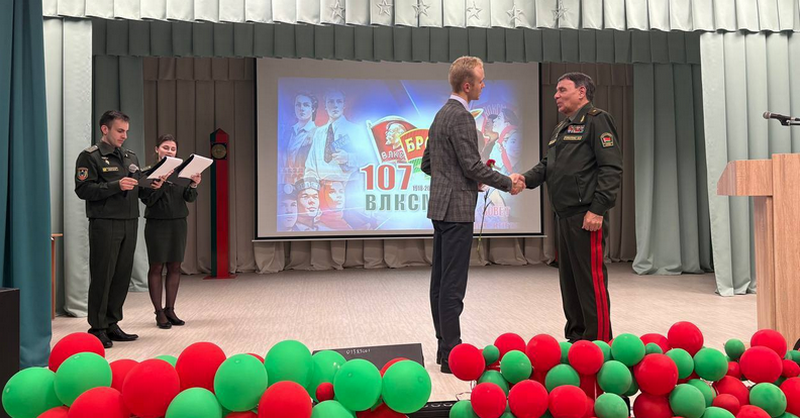 Первый секретарь Минской городской организации ОО «БРСМ» Алексей Пикус поздравил ветеранов пограничной службы с 107-й годовщиной комсомольского движения и вручил юбилейные медали в знак признания их вклада в воспитание молодёжи и защиту границ Родины. В торжественной обстановке кадетам были вручены членские смарт-билеты Белорусского республиканского союза молодёжи. Этот момент стал особенно значимым для юных участников, ведь он ознаменовал их вступление в ряды современной молодёжной организации, продолжающей лучшие традиции комсомола.